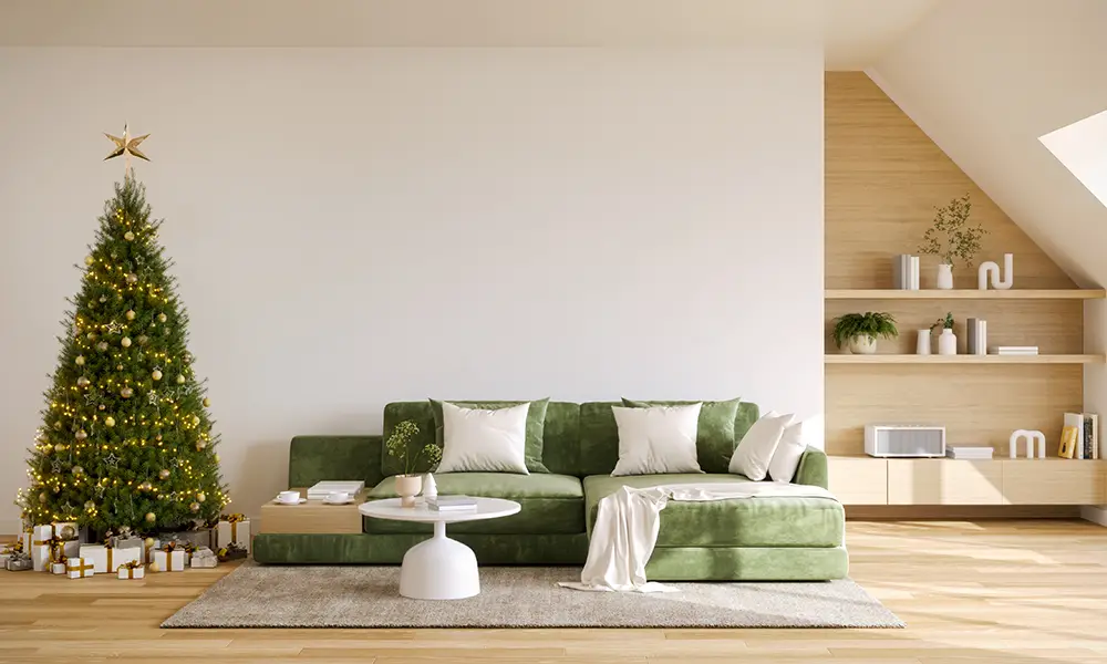 Posicionamento da árvore de Natal e alternativas para salas compactas