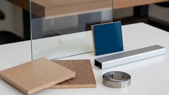 O vidro pode ser incolor, extra-clear, fumê ou reflecta, cada um com impacto diferente na estética e na visualização interna dos módulos. Já os perfis de alumínio garantem rigidez, acabamento preciso e maior durabilidade no uso diário.